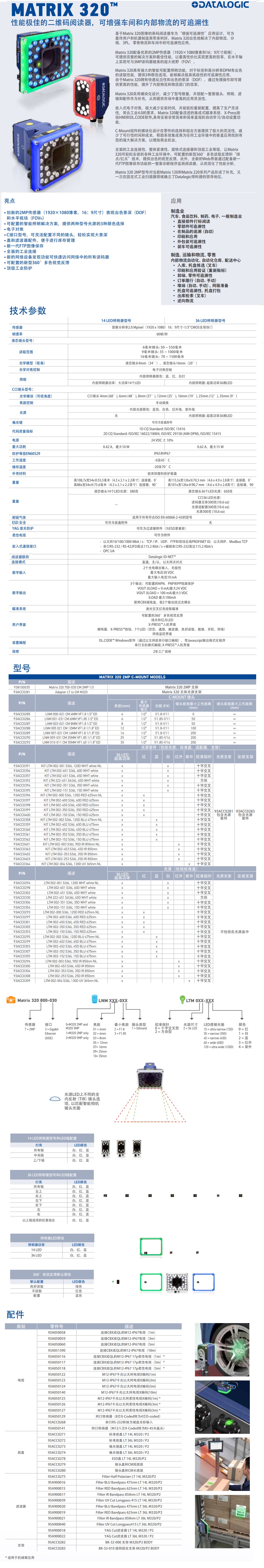 卓越性能 Matrix 320通过两个新的选项扩大了其行业领先地位 首先是引入了6mm液态镜头(LQL)。这提供了一个宽广的视角,扩大了现有的中等和窄视角的范围。第二个是能够使用Datalogic或第三方供应商的任何C口兼容镜头。有了这些补充,用户可以获得更高的灵活性来解决更棘手的应用挑战。 产品参数 解码能力:一维、二维 传感器类型:图像分辨率2.0 Mpixel(1920 x 1080)16:9尺寸-1/3”CMOS全局快门 嵌入式通信接口: 以太网10/100/1000 Mbit / s:TCP / IP、UDP、FTP和现场总线PROFINET IO、以太网IP、Modbus TCP 串口RS-232 / RS-422FD高达115.2 Kbit / s +辅助串口RS-232高达115.2 Kbit / s OPC UA 连接模式:直通,主/从,以太网点对点 防护等级:IP65和IP67 行业应用 • 制造业 • 制造、运输和物流、零售 |