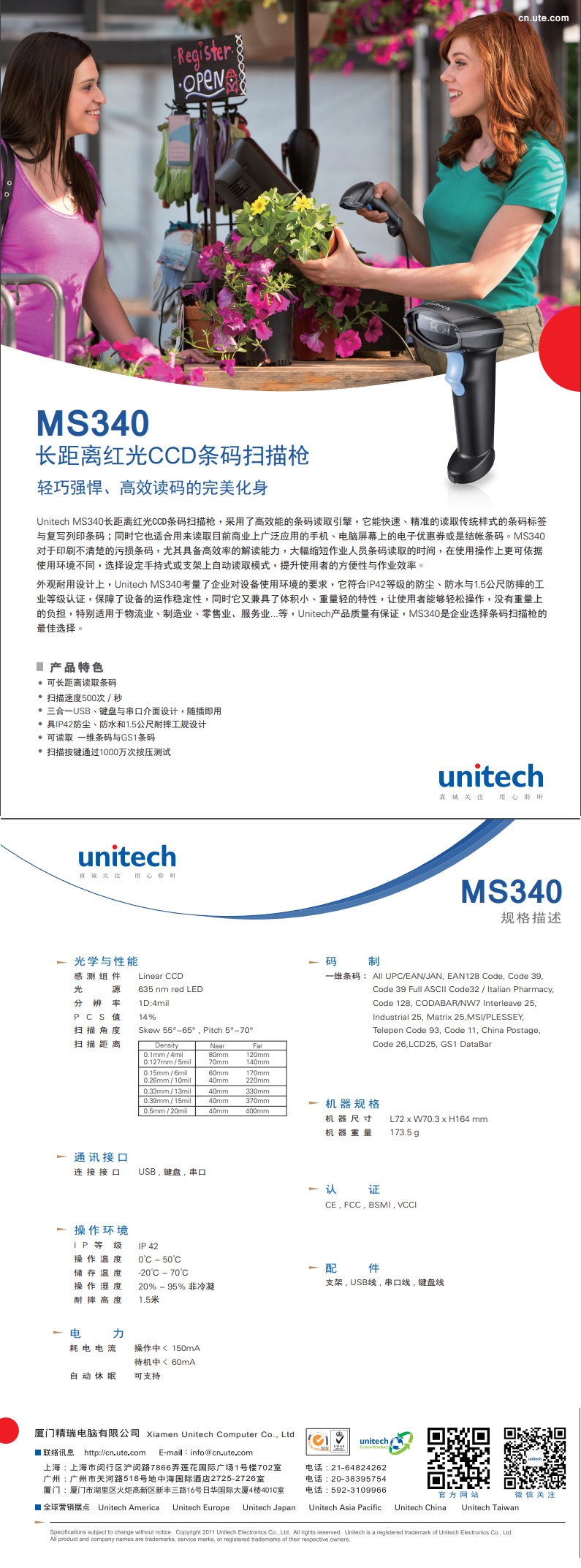 卓越性能 Unitech MS340 长距离红光条码扫描枪,采用了高效能的条形码读取引擎,它能快速、精准的读取传统样式的条码标签与复写打印条码;同时它也适合用来读取目前商业上广泛应用的手机、电脑屏幕上的电子优惠券或是结帐条码。MS340对于印刷不清楚的污损条码,尤其具备高效率的解读能力,大幅缩短作业人员条码读取的时间,在使用操作上更可依据使用环境不同,选择设定手持式或支架上自动读取模式,提升使用者的方便性与作业效率。 产品参数 尺寸:72 x 70.3 x 164 mm 重量:173.5g 密封:IP42 耐摔高度:1.5米 解码能力:1D 扫描技术:Linear CCD 行业应用 • 物流业 • 制造业 • 零售业 • 服务业 |
